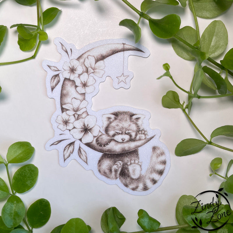 Panda on the moon Glitter Sticker